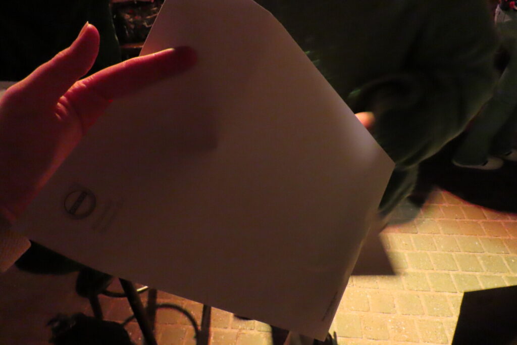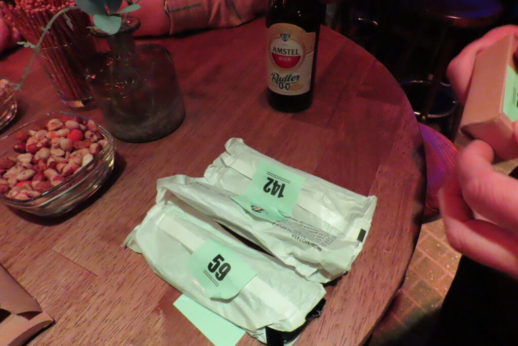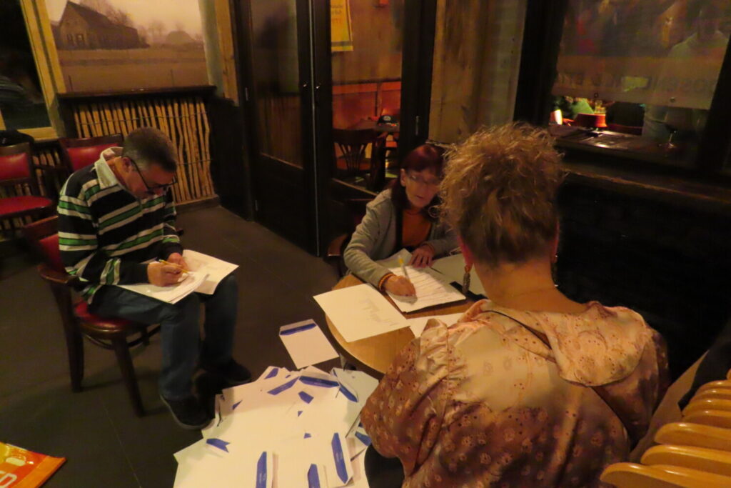 Om de 3 prijzen te verdelen trokken ze bierviltjes met 1, 2 of 3 erop. Hiermee werd Roberto eerste, Wilma 2e en Saskia derde.