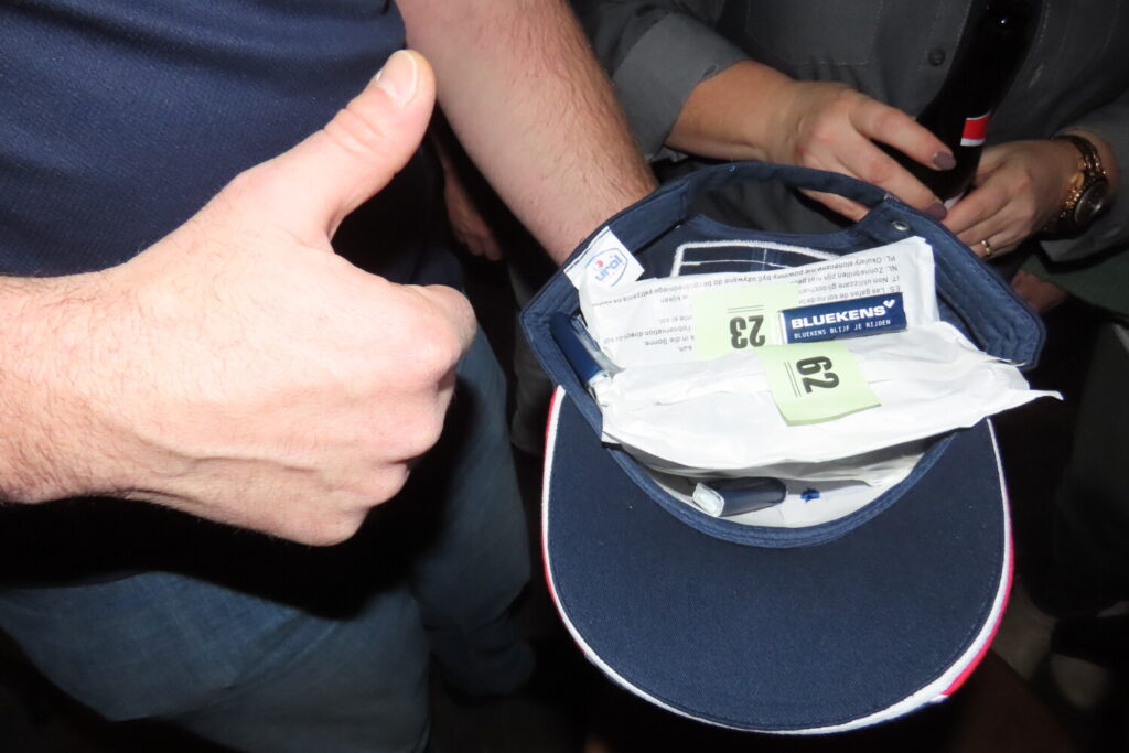 Tijdens de gezellige reünie van de Achtmaalse Rally Club had de feestcommissie een leuke verrassing in petto: enveloppen met maar liefst 90% winkans! Bijna iedereen ging dus naar huis met één of meerdere prijzen, en dat zorgde voor veel plezier en hilarische momenten. Zo vertrok Freek met niet minder dan zeven zonnebrillen én een fles champagne. Roberto deed daar niet veel voor onder; we hebben de leukste foto’s van hem gemaakt terwijl hij pronkte met maar liefst vijf zonnebrillen tegelijk! Een ander opvallend moment was toen Rudi opdook met een nostalgische pet van de legendarische Exotic Green Rally. Hoewel hij deze zelf niet had gewonnen, werd er volop geruild en gedeeld tussen de aanwezigen. Dat maakte de avond extra bijzonder en zorgde voor een gevoel van saamhorigheid.