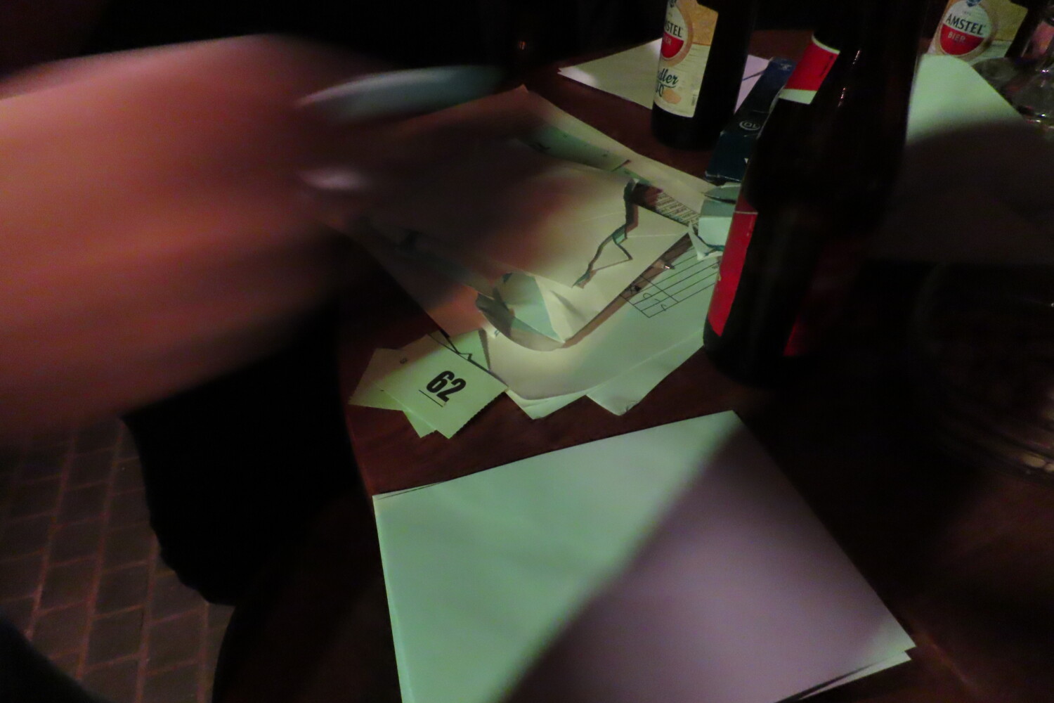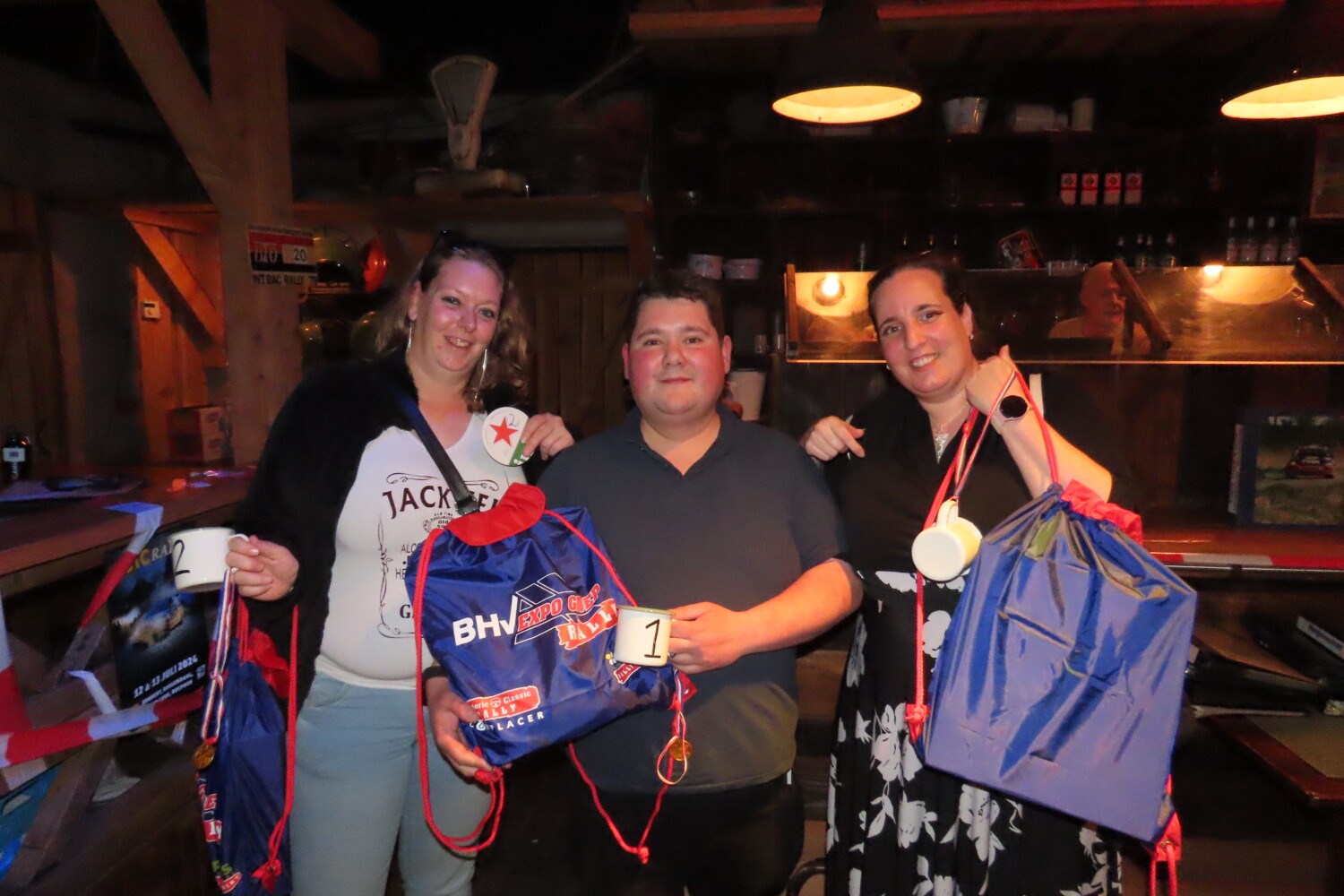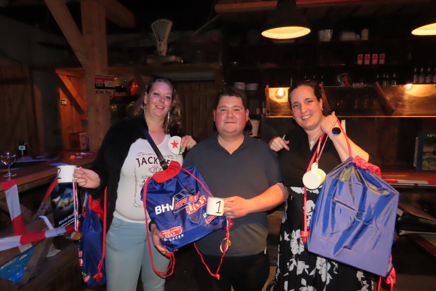Om de 3 prijzen te verdelen trokken ze bierviltjes met 1, 2 of 3 erop. Hiermee werd Roberto eerste, Wilma 2e en Saskia derde.